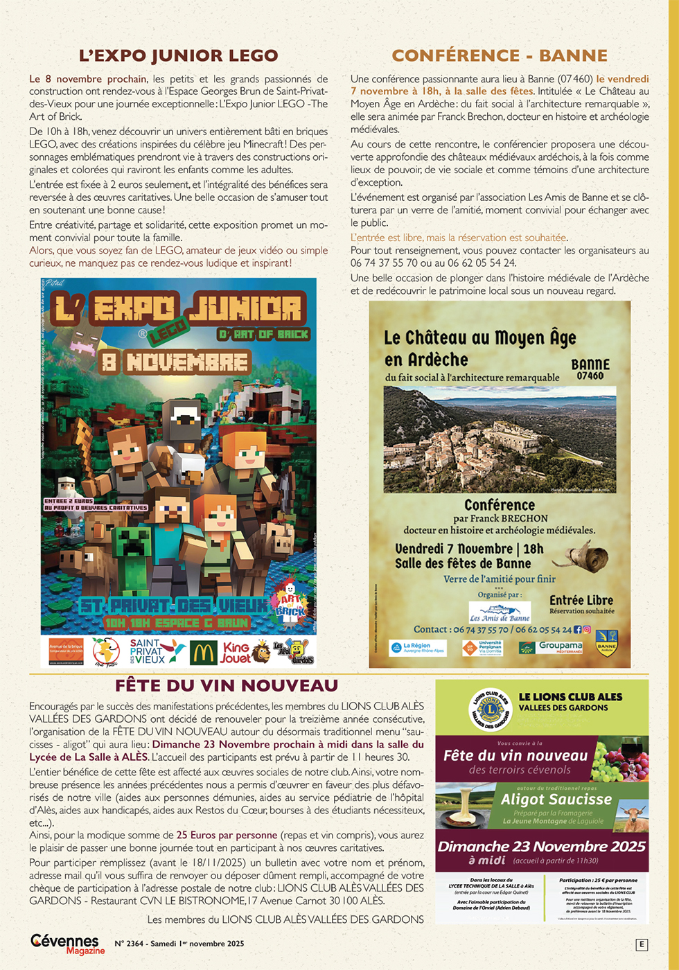 SOMMAIRE N° 2364 du samedi 1er novembre 2025