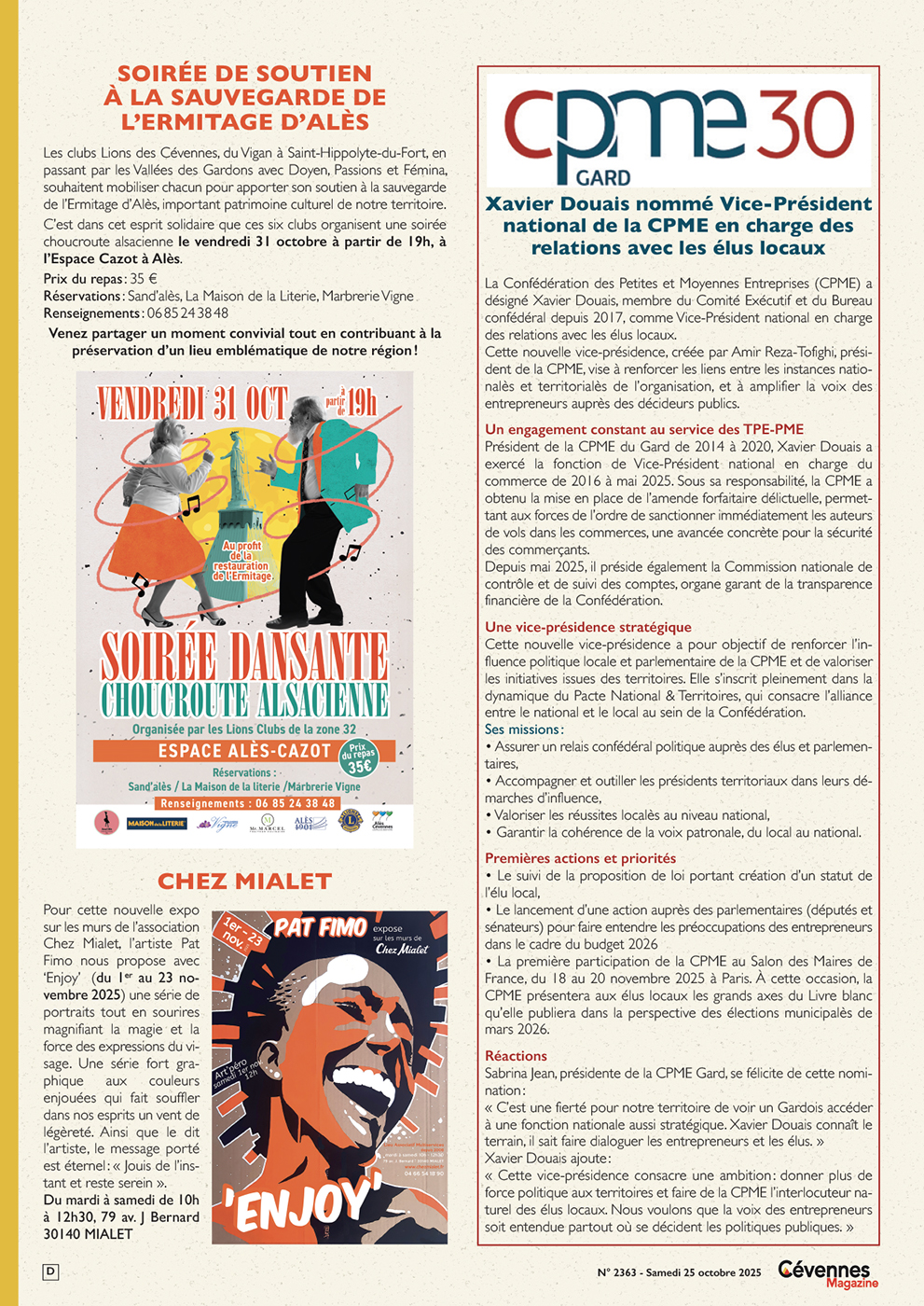 SOMMAIRE N° 2363 du samedi 25 octobre 2025